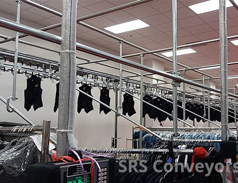 SRS Conveyors increases garment finishing productivity with its rotating conveyor.